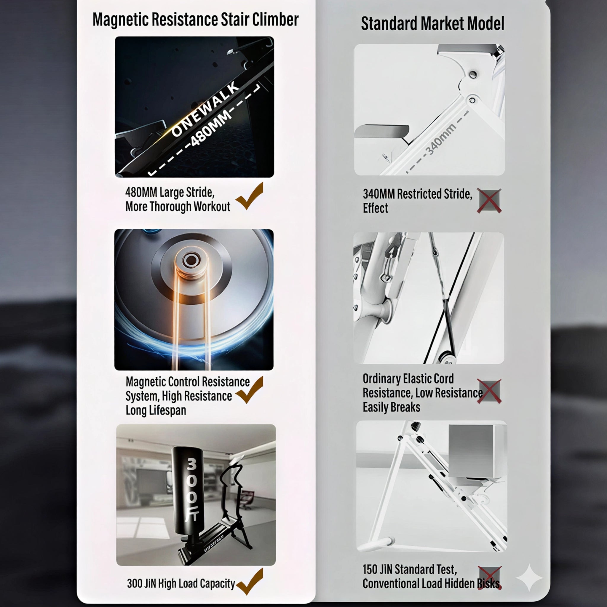 Delivers up to 40kg of resistance for a progressive training experience. - Natural Climbing Motion: Designed with a 26°–30° incline and 480mm stride length, replicating a realistic stair-climbing motion to engage glutes, quads, calves, and core.