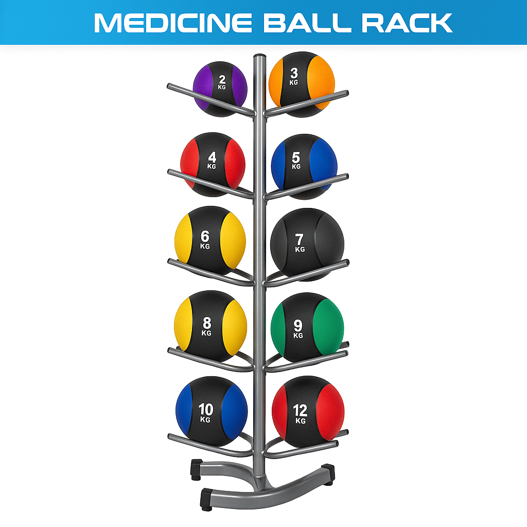 - Holds up to 10 Medicine Balls (all sizes and brands).