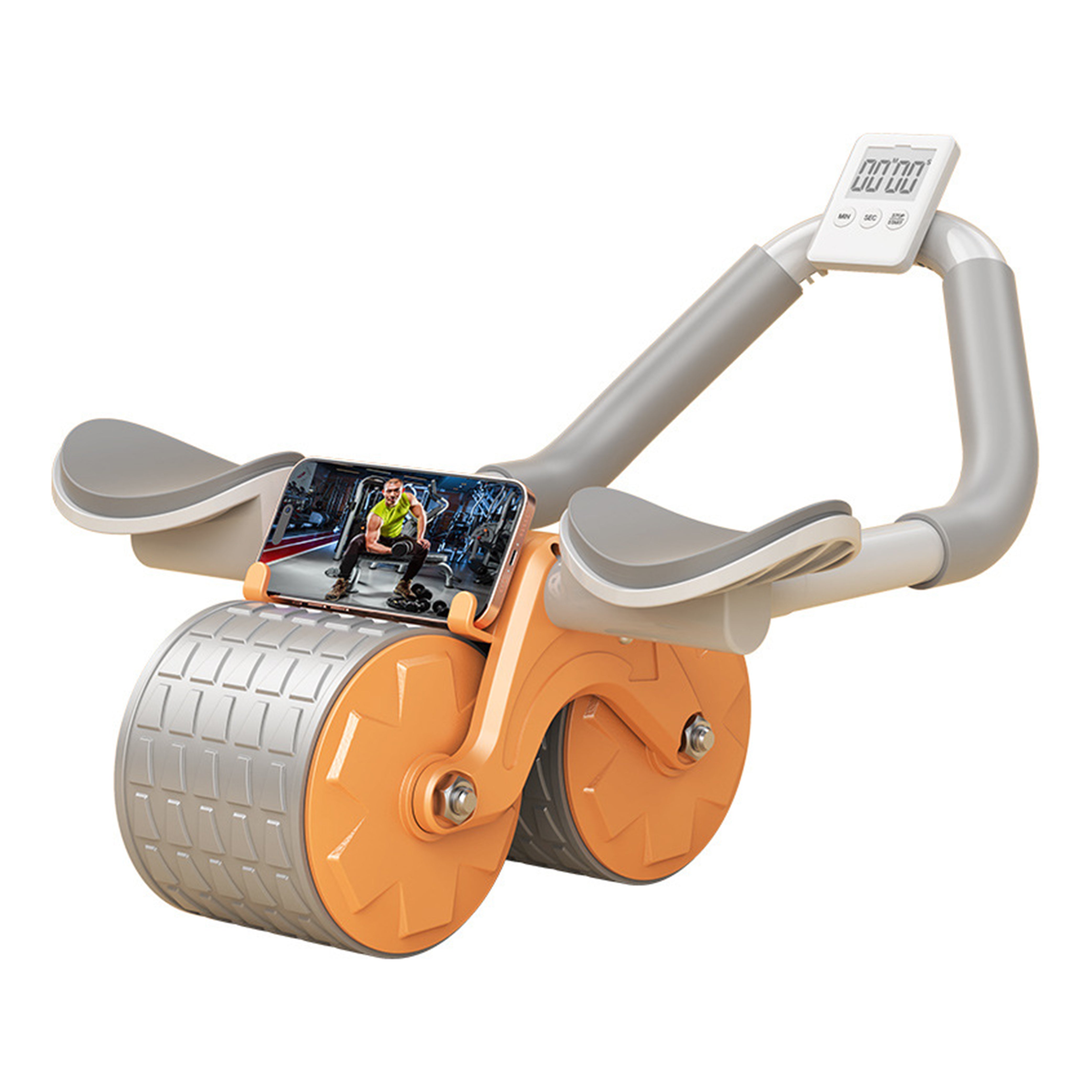 The ultimate tool to supercharge your core workouts and sculpt those dream-worthy, chiseled abs you've been longing for. Engineered with a focus on durability, this dual-wheel wonder is built to withstand your toughest exercises. The non-slip handles provide a secure grip, ensuring that your hands remain comfortable even during the most intense workouts. Plus, we've included a thick, cushioned knee mat to safeguard your knees on any surface, guaranteeing a pain-free, comfortable experience. Whether you're a beginner or a seasoned pro, the Ab Roller Wheel is adaptable to your fitness level, helping you achieve effective core training, improved posture, and enhanced stability. Compact and portable, you can take it anywhere for versatile workouts that will transform your body. Say goodbye to discomfort and hello to a stronger, stable, more confident you with our Ab Roller Wheel with Knee Mat. Perfect for home gym uses.