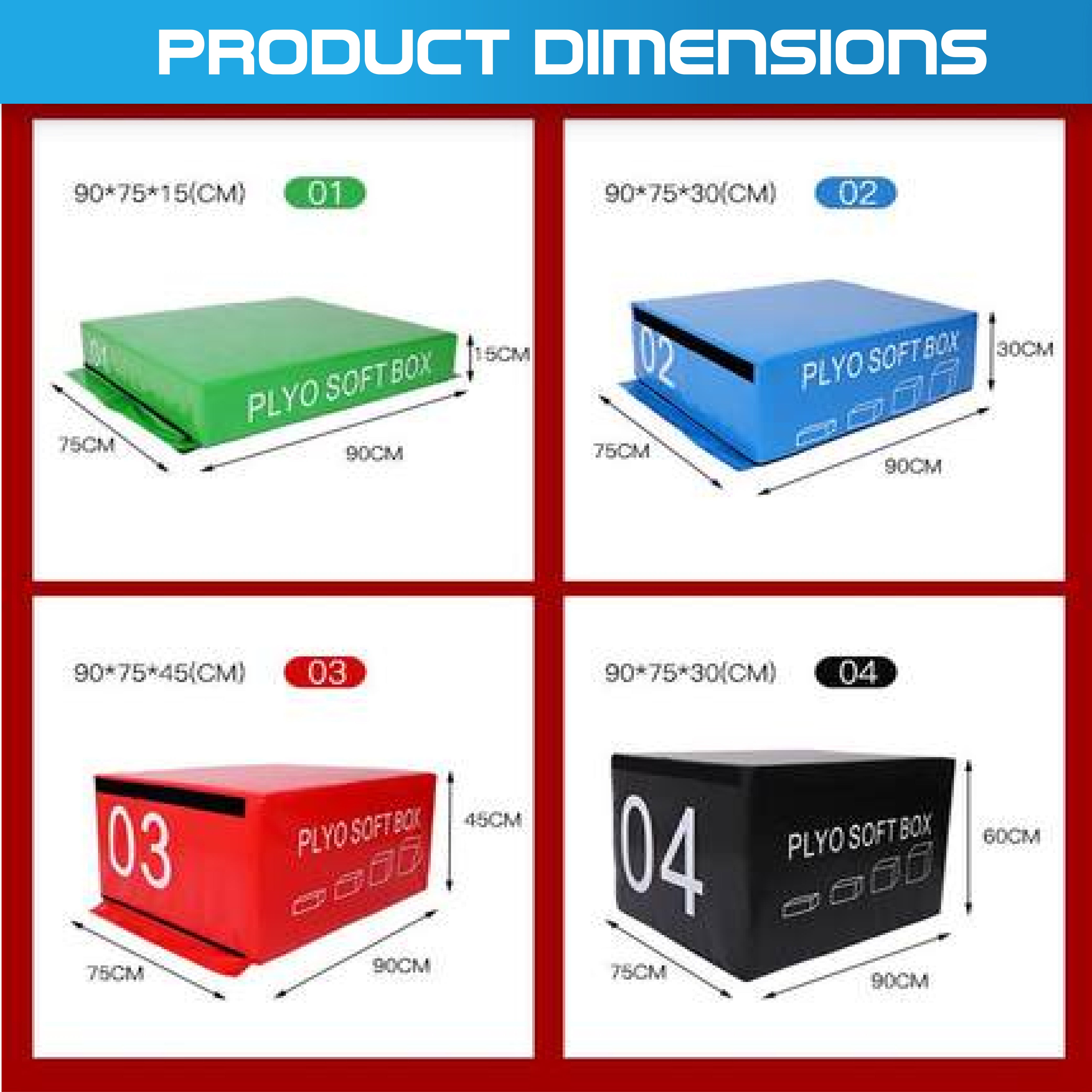 The Plyometric box have 4 different sized, each box has a different jump height, allow the user to progress their training over time and vary training tailored for specific needs. Help to improve the body power, speed, fitness and strength.