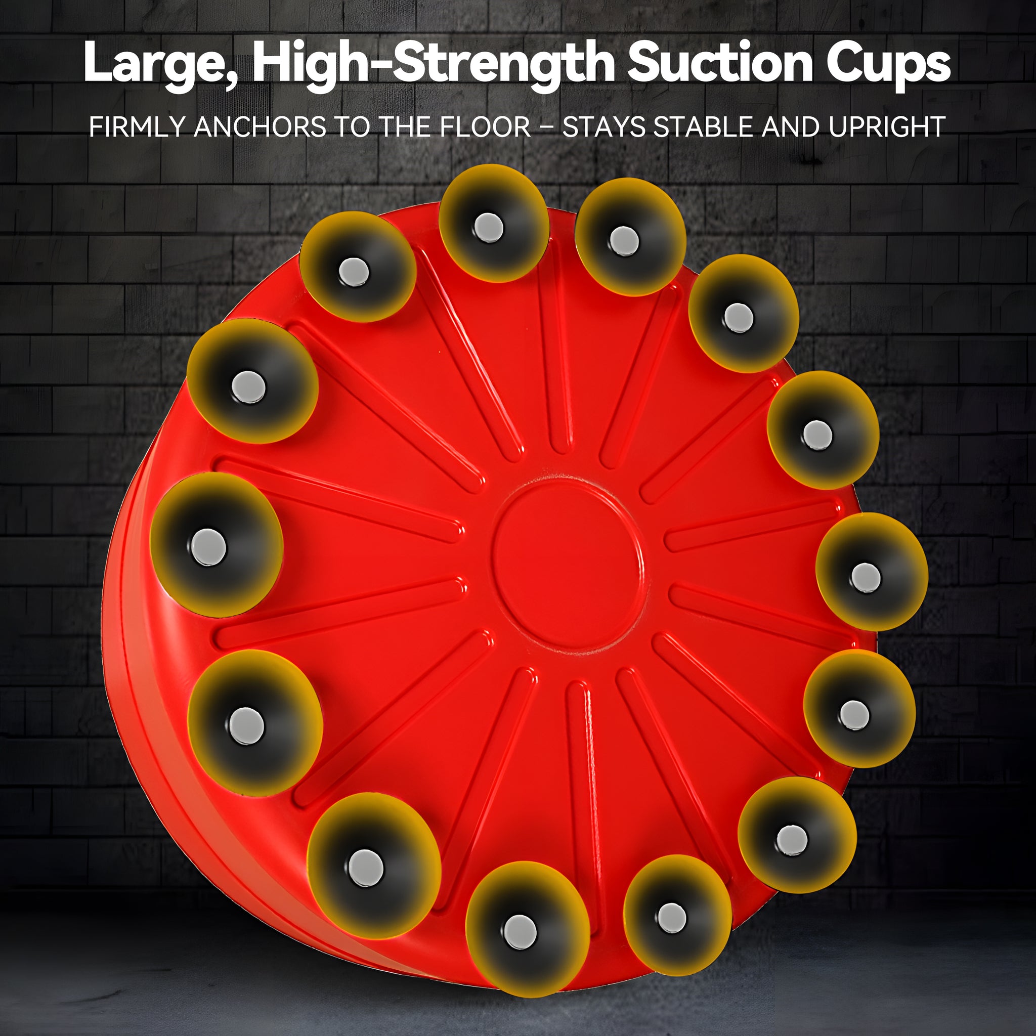 Base weighs approx. 200kg (water filled) or 260kg+ (sand filled) to minimize movement during heavy strikes, providing a secure heavy bag and stand solution.When filled with sand, the base requires the 14 suction cups to ensure maximum stability. -