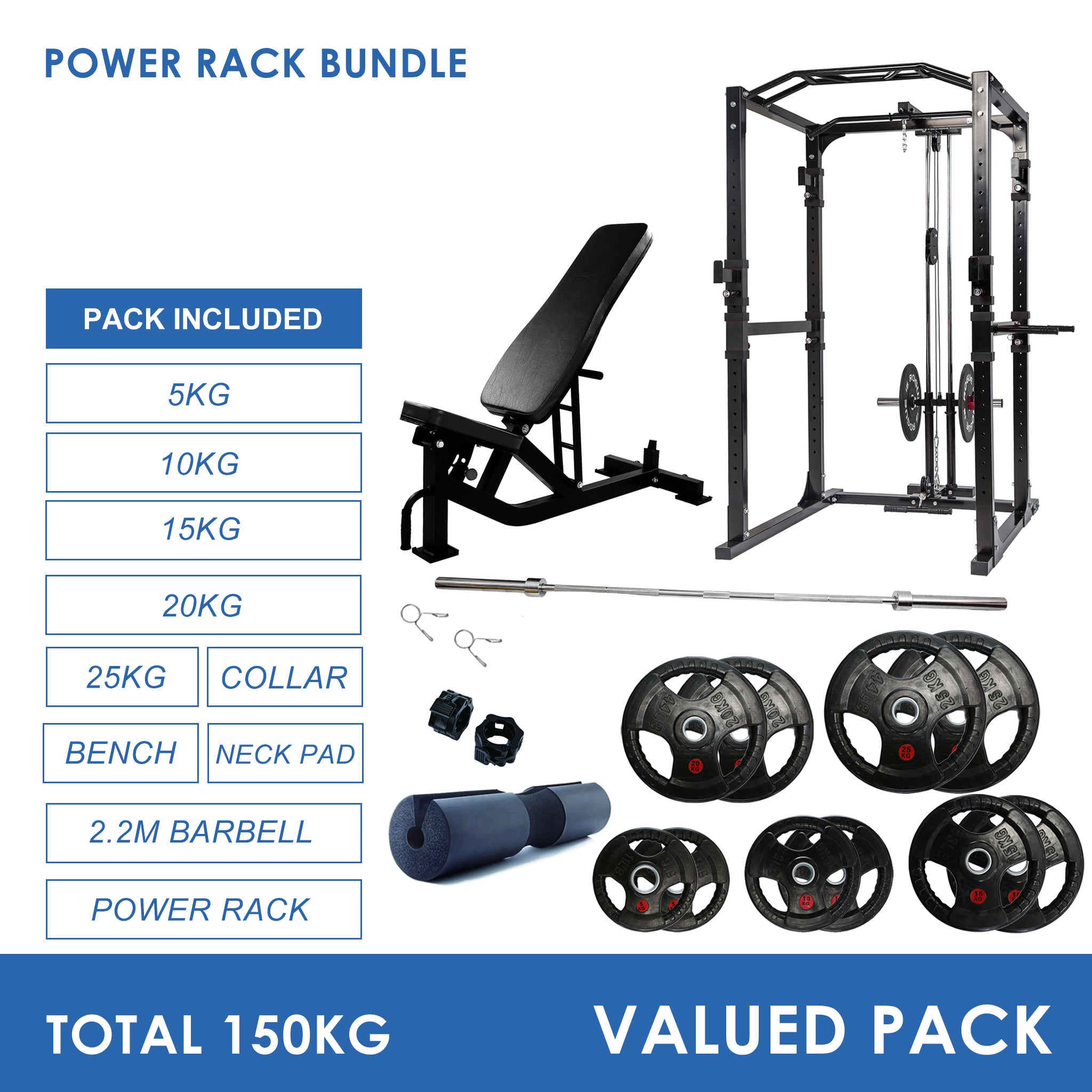 - Adjustable bar height for squats, bench press, overhead press and any other exercise