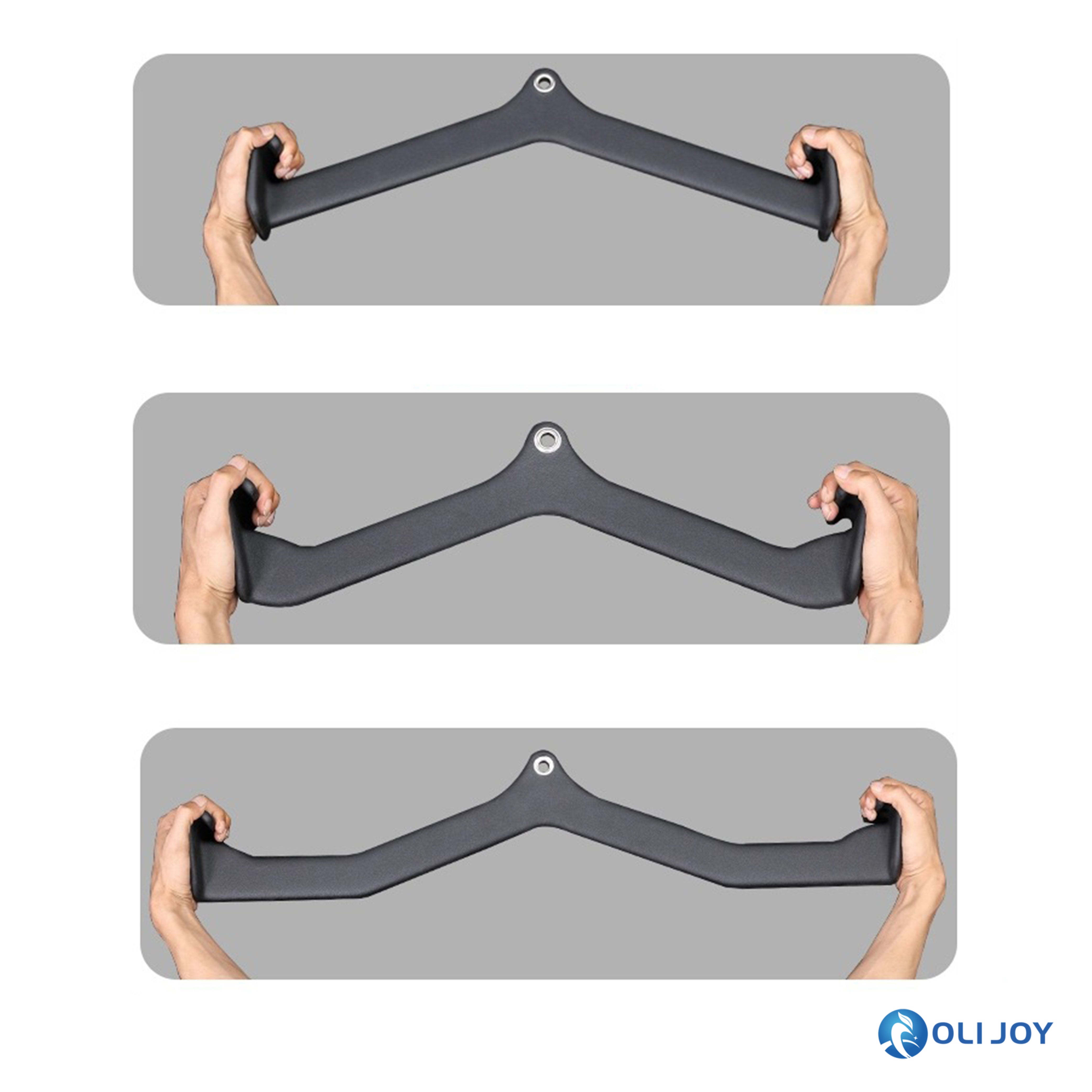 Perfect for behind-the-head pulldowns without the awkward twists of shoulders. Targets both your lat and biceps at the same time.