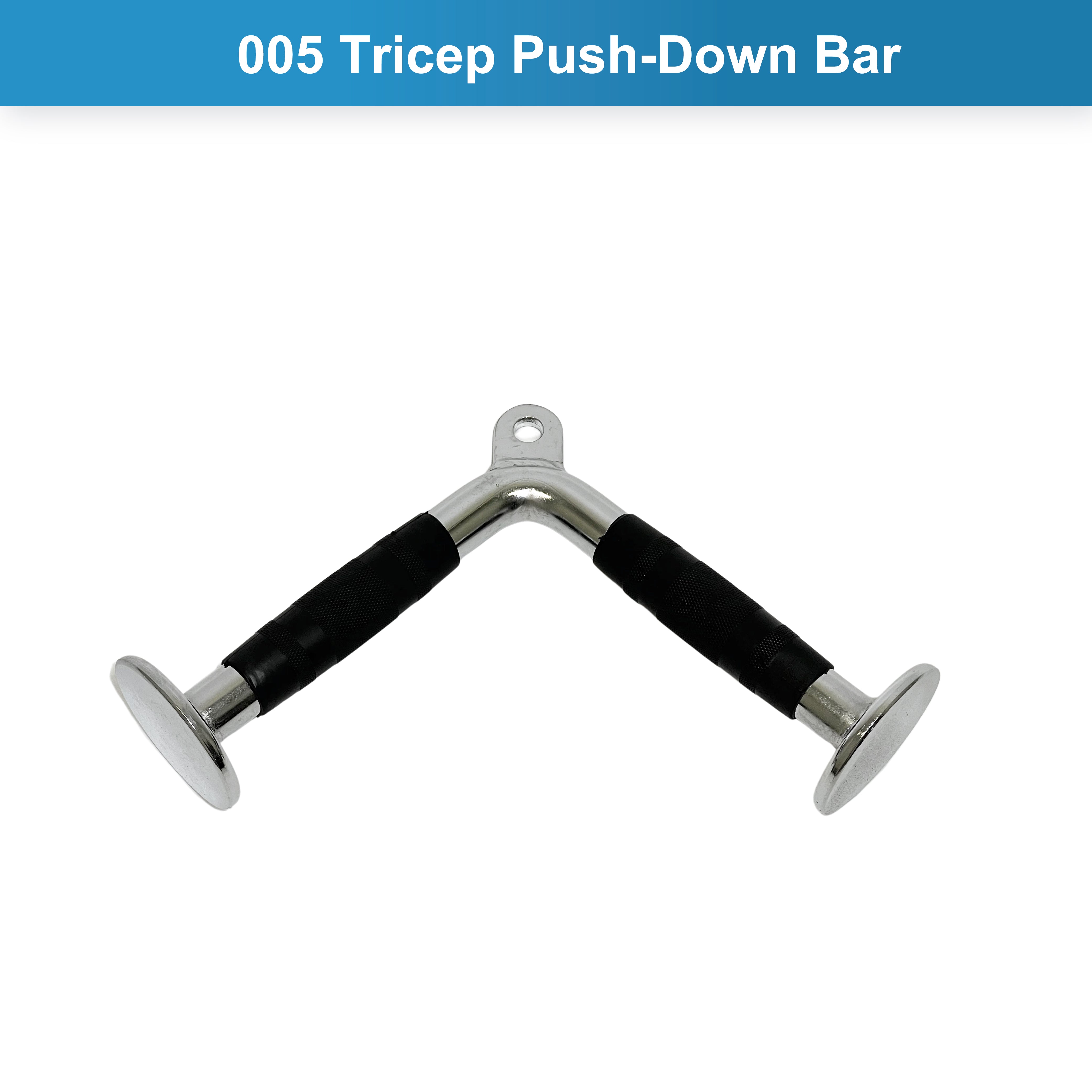 One of the most commonly used gym station attachments for tricep isolation. Comes in a heavy-duty revolving design to protect your joints and provides a fuller range of motions. Heavy-duty steel construction and ergo rubber handles, our Revolving Tricep Pushdown bar is perfect for any home or gym application.
