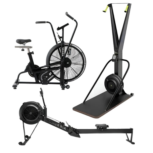 Air Resistance Rowing Machine, Ski Trainer & Heavy-Duty Air Bike – Complete Cardio Home & Commercial Gym Bundle