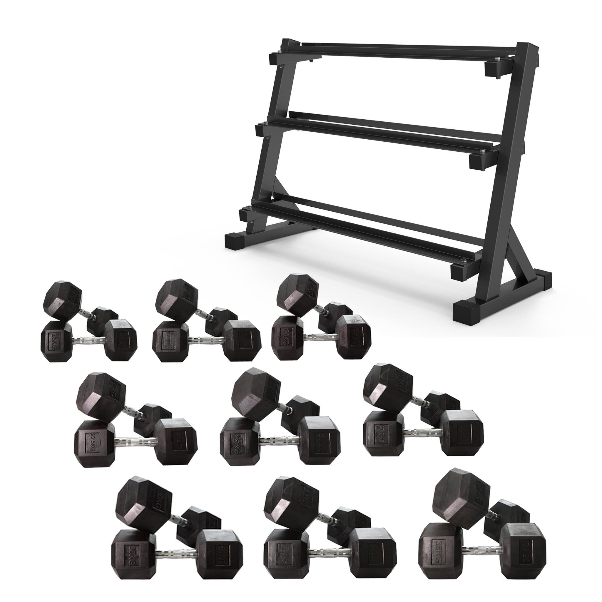 Forged with unparalleled strength, the 3-Tier Dumbbell Rack stands as an epitome of unwavering durability and unparalleled functionality. Fashioned from an unyielding steel frame coated with an indomitable powder finish, this heavyweight champion guarantees steadfast support for your dumbbell collection. Its three meticulously angled tiers not only provide a secure and organized haven for your fitness arsenal but also underscore its commitment to enduring strength.