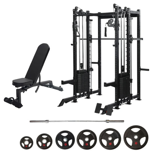 Oli Joy 5383 Home Strength Bundle – Smith Machine with 100 kg Olympic Plates, Barbell & Adjustable Bench