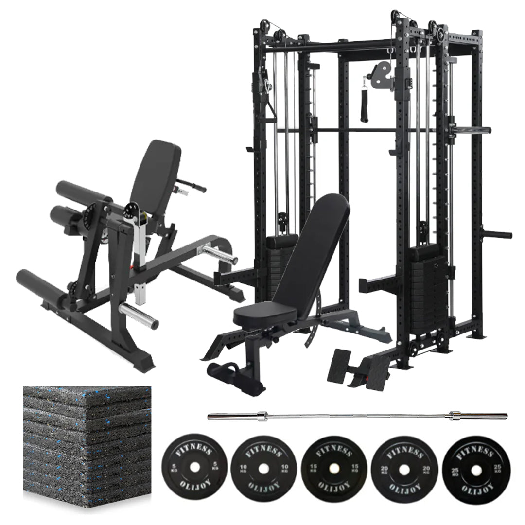 Oli Joy 8019 Ultimate Strength Bundle, All-in-One Smith Machine with Cable Crossover, 140 kg Weight Stacks Home Gym, Smith Machine with 150 kg Bumper Plates, Leg Extension Leg Curl Machine 5360, Olympic Barbell and Bench Set, Complete Home Gym System Australia, Modular Power Rack with Gym Mat.