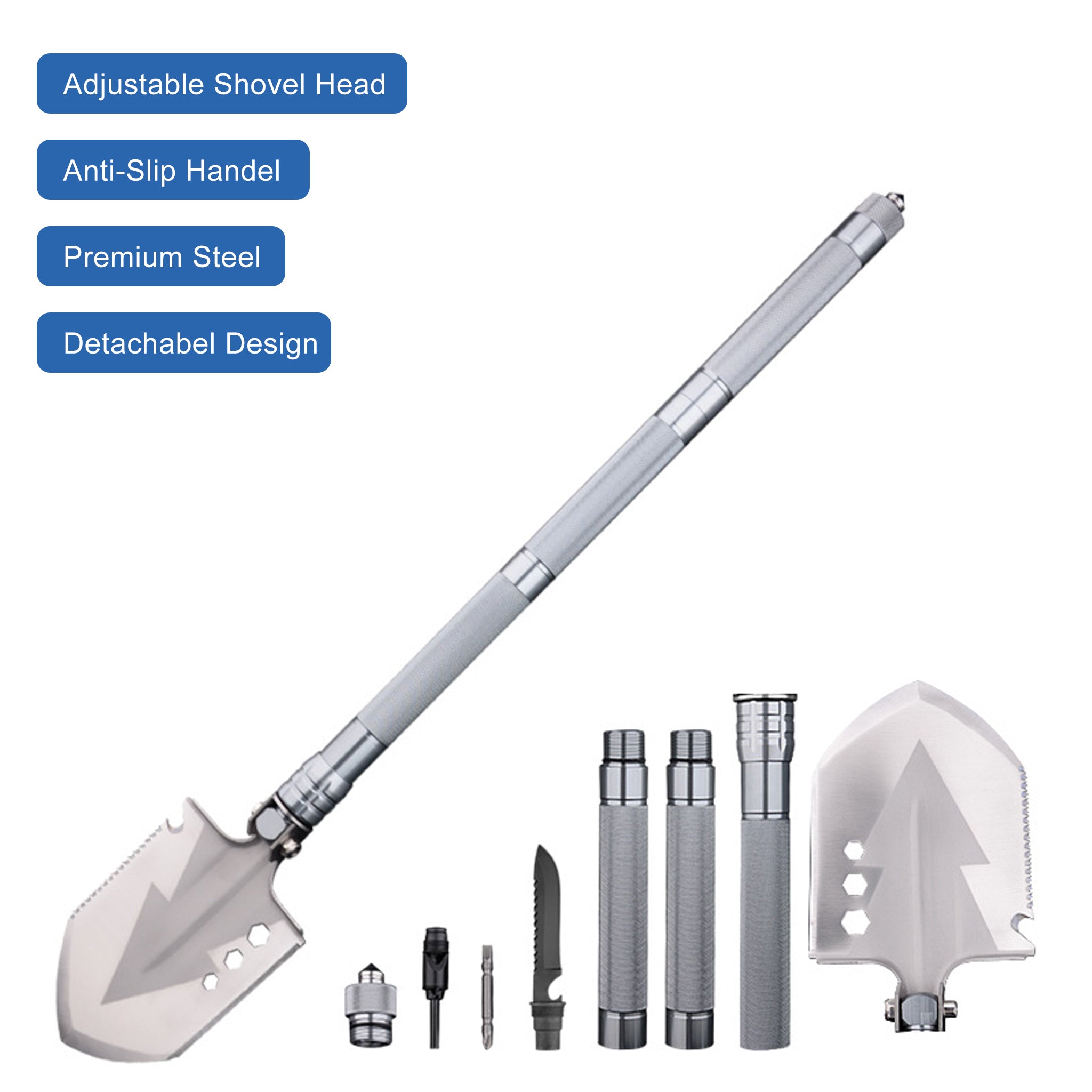 - The camping shovel is an all-round companion into the wilderness that you can use to quickly dig, cut, saw, move, hammer, and many more.