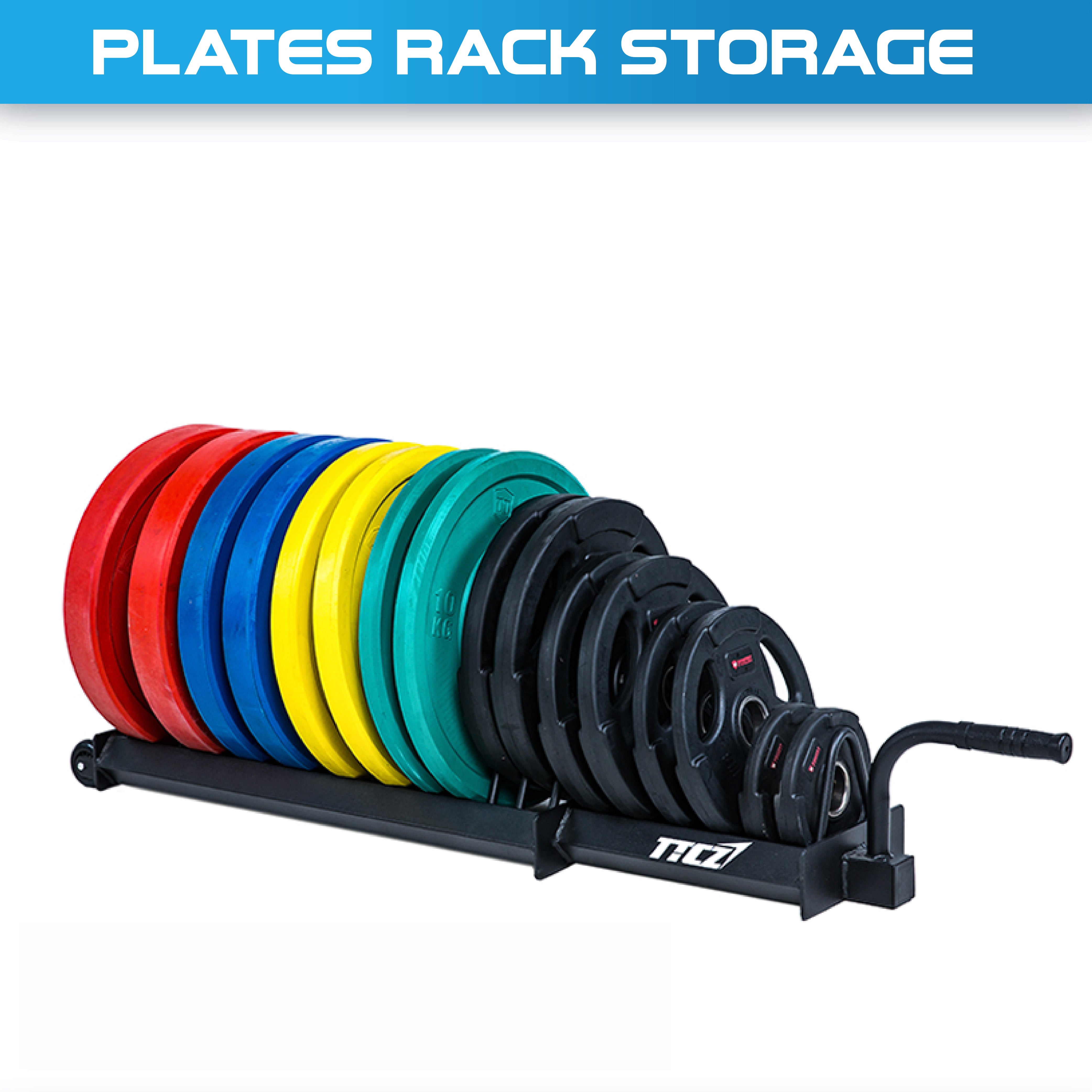 This Plate Trolley Hybrid is the ultimate in weight plate storage. The rack has commercial grade handle and wheels that make it easy to move your plates from one location to the next within your training facility, reducing workload and the chance of injury.