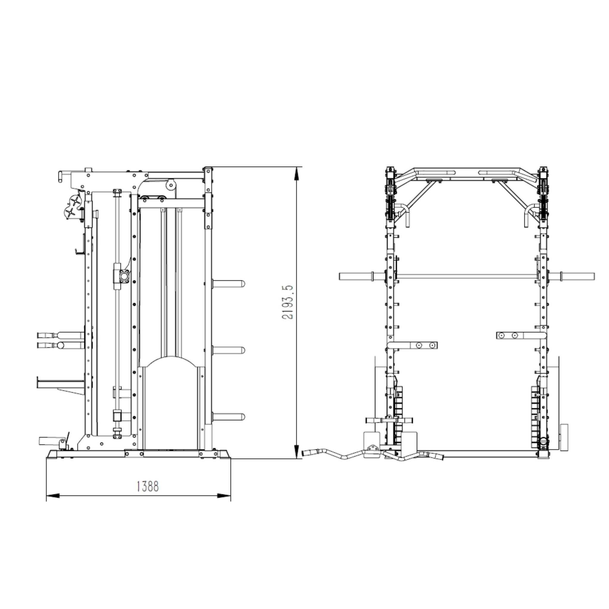 This system integrates guided Smith training, full free-weight barbell capability, dual independent cable resistance, and functional landmine work into one reinforced frame. Rather than positioning itself as a shortcut or replacement for proper training, the rack provides a controlled, repeatable environment where different training methods coexist without blurring their purpose.