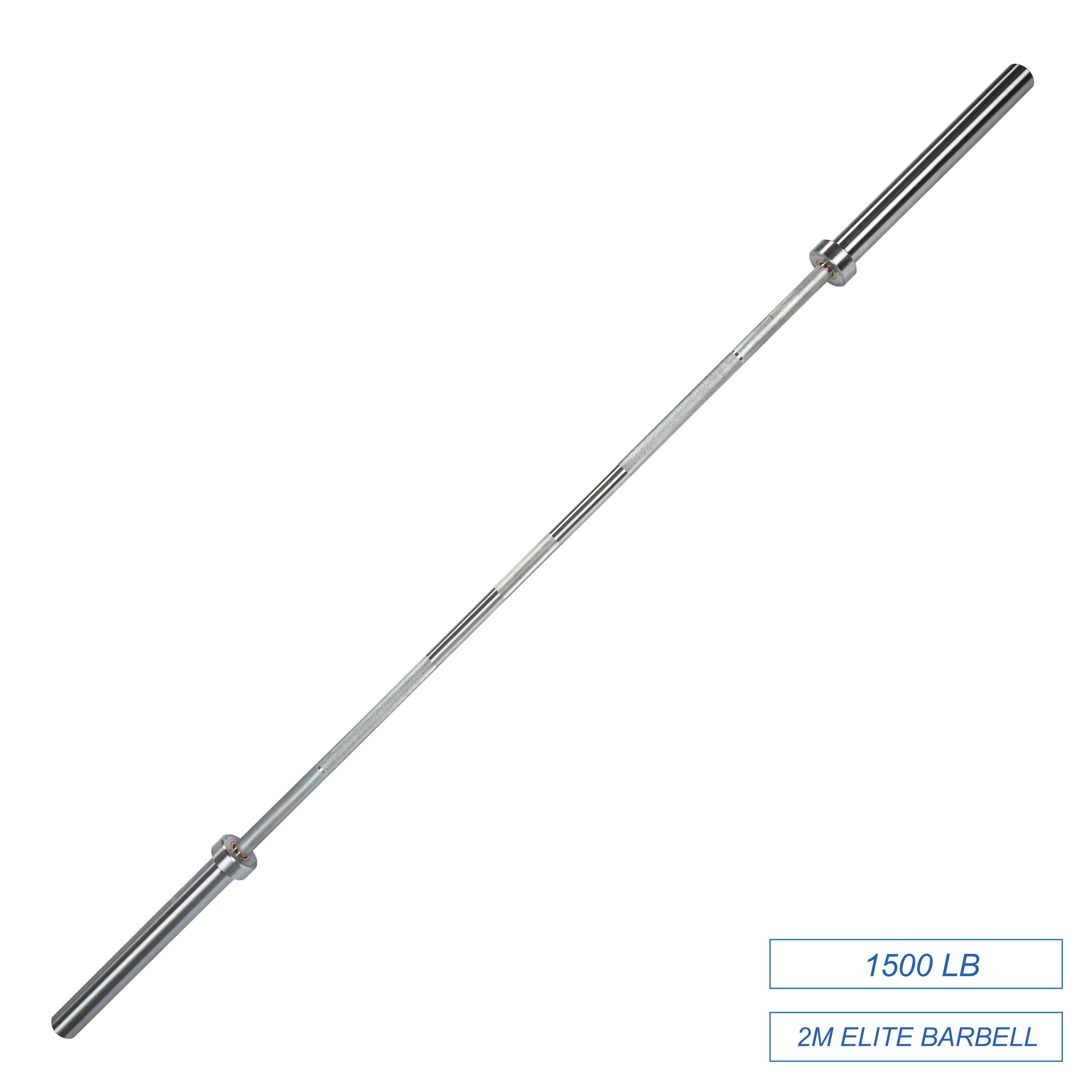 This Elite 2M 1500LBS (680KG) Olympic Barbell qualifies to the higher-end manufacture standard, which is 150K PSI (tensile steel strength) rating. Tensile Strength is the breaking point of the barbell. 8 needle bearings provide you with perfectible spin on the sleeves and a longer lifespan for your bar. Confidently handle weights up to 1500LBS (680KG) and extra durable features.