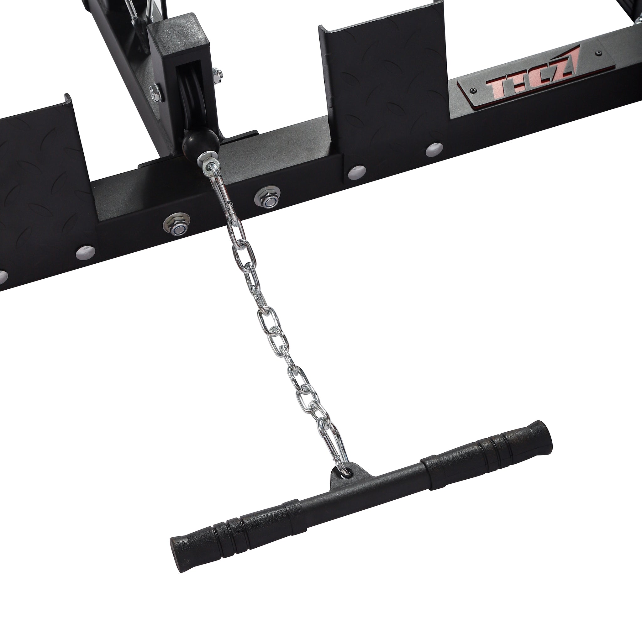 The lat pull down system is an integral part of this versatile machine, providing you with the means to strengthen your upper body, particularly your back, shoulders, and arms. The adjustable pulley system accommodates various exercises, such as lat pulldowns, seated rows, tricep pushdowns, and bicep curls. With multiple attachment options, you can customize your workout routine to suit your fitness goals and preferences. Moreover, it comes with impressive features such as an adjustable dip bar, chest press attachment, landmine attachment, and chin up bar, offering you additional workout options.